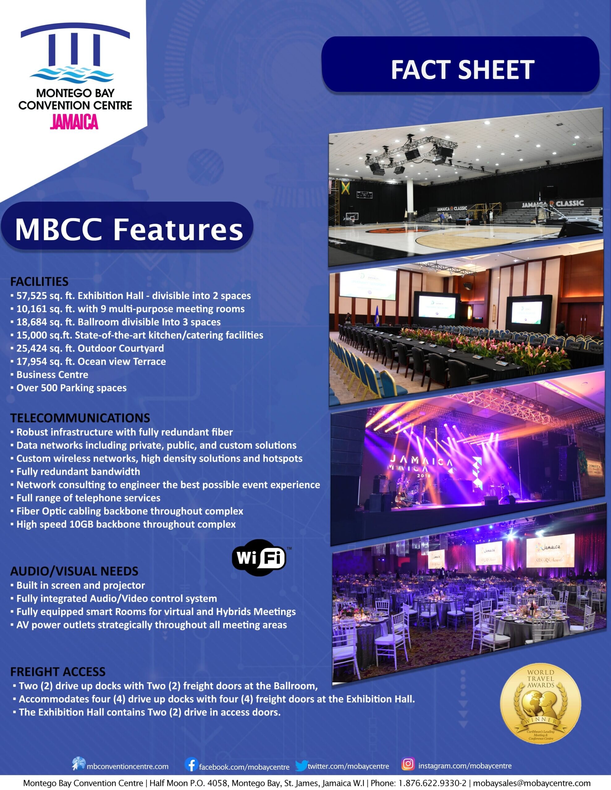 Below are the marketing collateral materials currently available for the Montego Bay Convention Centre. You may download by clicking on the images below. Please note that material contained within are subject to change without notice.